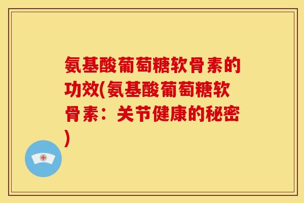 随着人们的寿命延长,等关节已成为老年人日常生活中影响身体健康的重要因素之一。氨基酸葡萄糖软骨素(简称:GAGs)在关节健康中起着至关重要的作用。下面我们来探讨一下氨基酸葡萄糖软骨素的功效。