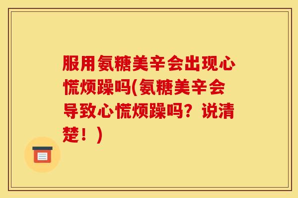 氨糖美辛是一种非甾体,被广泛用于缓解各种和。但是,许多人发现服用氨糖美辛后会出现心慌烦躁的症状。这个问题一直以来一直备受争议,本文将对此进行探究。