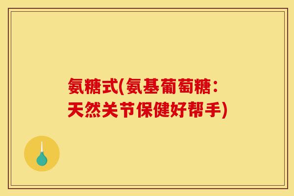 氨糖式(氨基葡萄糖):天然关节保健好帮手