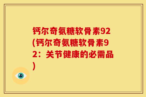 关节健康对于每个人而言都是极其重要的。然而,由于年龄、环境、生活习惯等多种因素的影响,许多人都会面临关节问题。关节、、红肿等症状可能会严重影响日常生活。而钙尔奇氨糖软骨素92则成为了帮助我们维持关节健康的必需品。