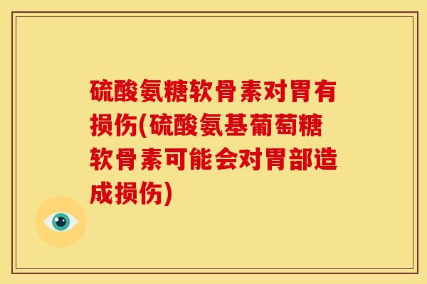 硫酸氨糖软骨素是一种常用于关节的,常见于食品补充剂以及中。尽管其在缓解关节及改善关节功能的效果显著,但硫酸氨糖软骨素可能会对胃部造成损伤,引起一系列不适症状。
