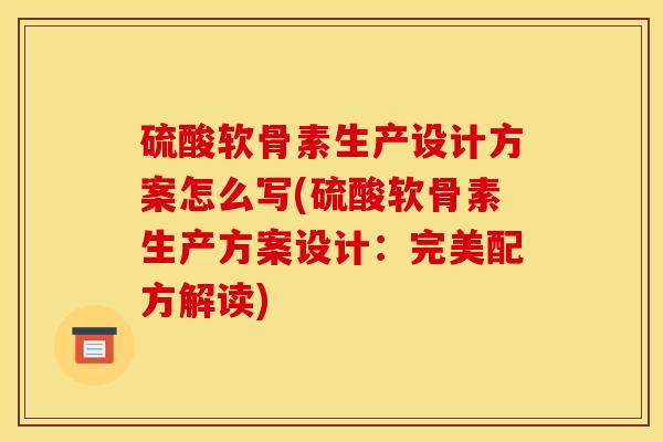 硫酸软骨素生产方案设计:完美配方解读